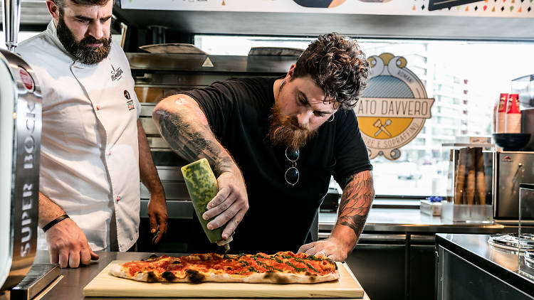 No restaurante de Alvalade mantêm-se as pizzas napolitanas, certificadas como as verdadeiras pela Associazione Verace Pizza Napoletana, mas no exterior, num pequeno quiosque, come-se agora pizza alla pala, à fatia, tipicamente romanas. Pizza&Gelato é o nome deste projecto-piloto da Mercantina, em parceria com a Davvero.